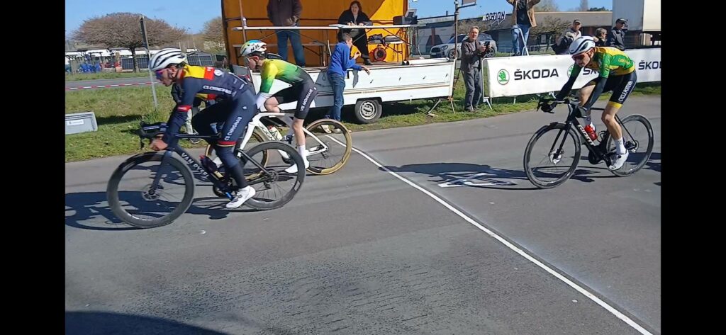 Les 2 hommes prennent rapidement une grosse minute d’avance sur ce qui reste du peloton qui perd des unités à chaque tour. A mi-course, Evan Plouhinec est lâché par le futur vainqueur et sera repris par la quinzaine d’hommes composant le peloton à l’entame du dernier tour. »