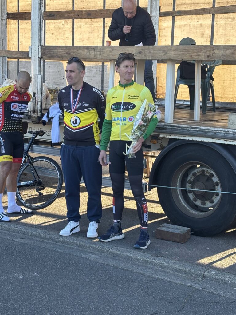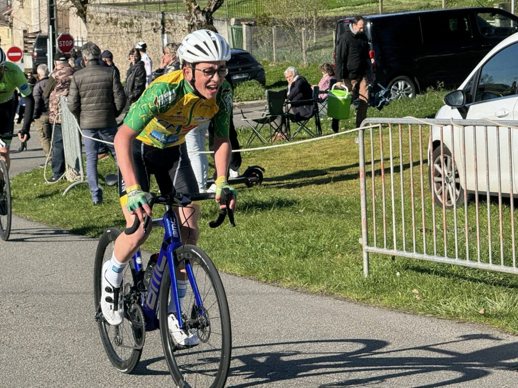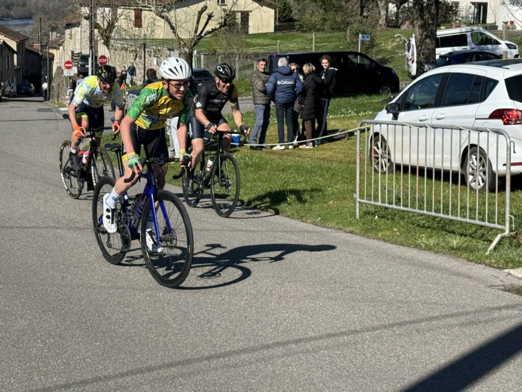 Chez les Open 1/2/3, une course de moelleux qui s’est disputée à très vive allure, près de 42 km/h de moyenne. Mais finalement c’est un peu le ton groupe et qui se disputera la victoire, qui reviendra à Guillaume Gerbaud devant notre ancien « Vert et Jaune » Loïs Chambon.