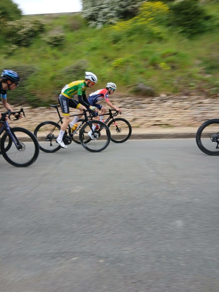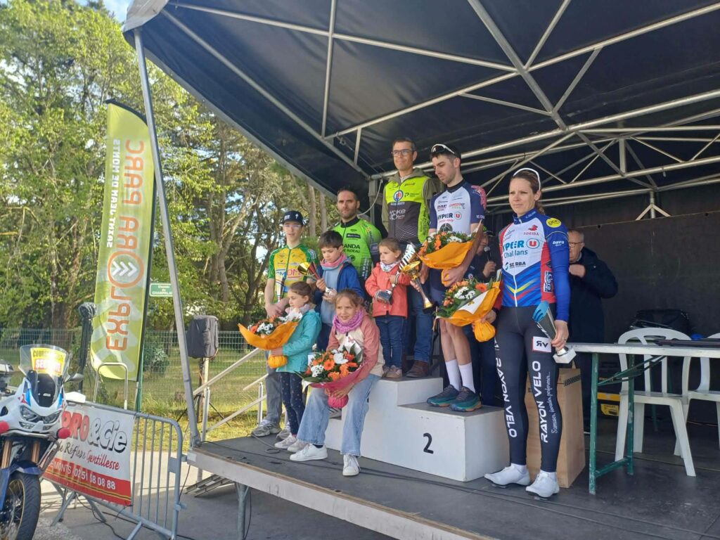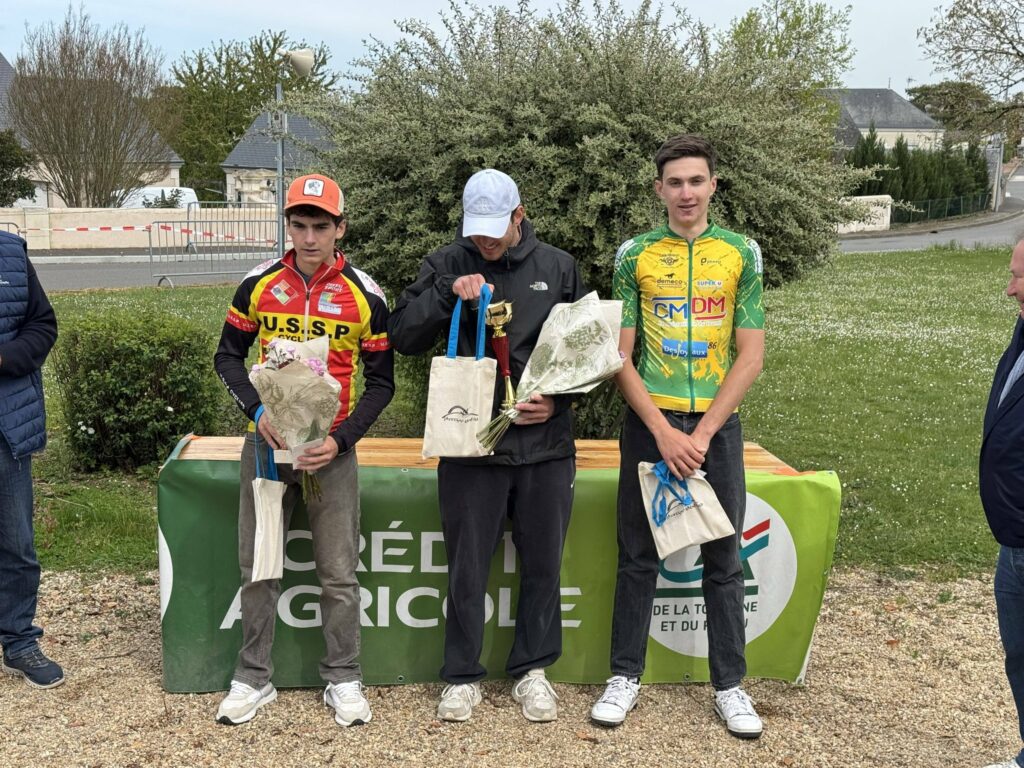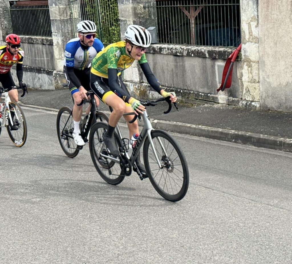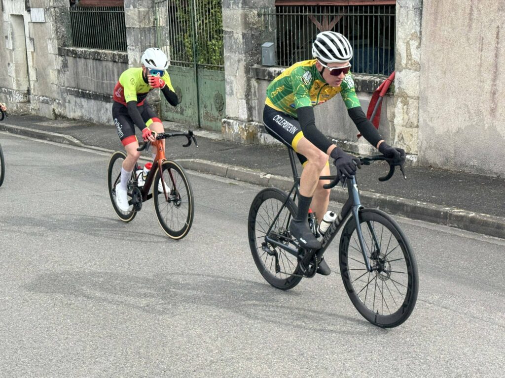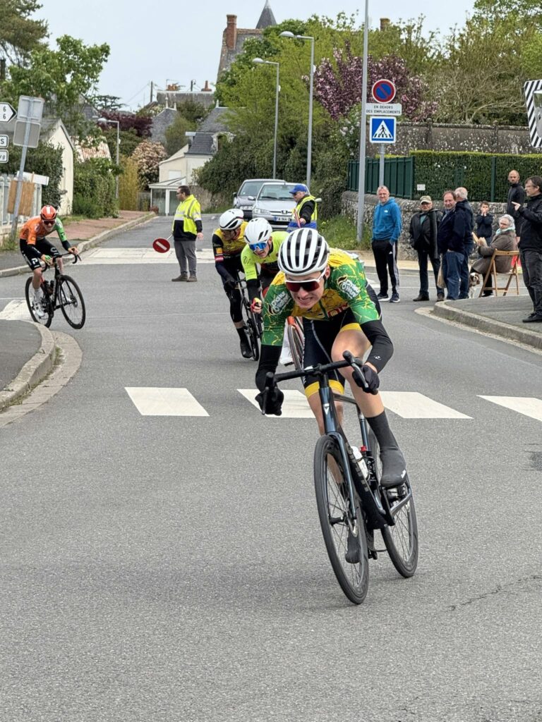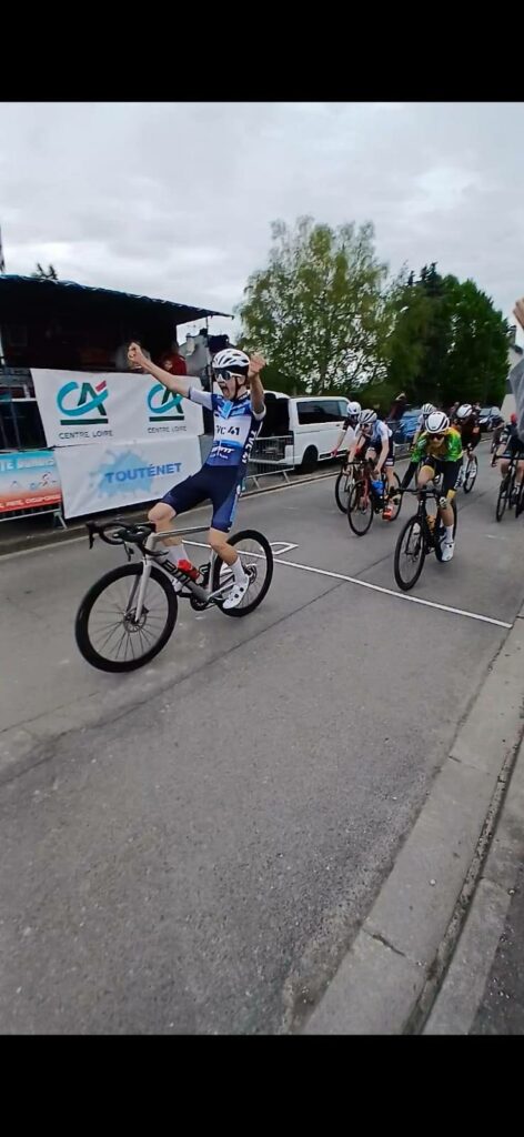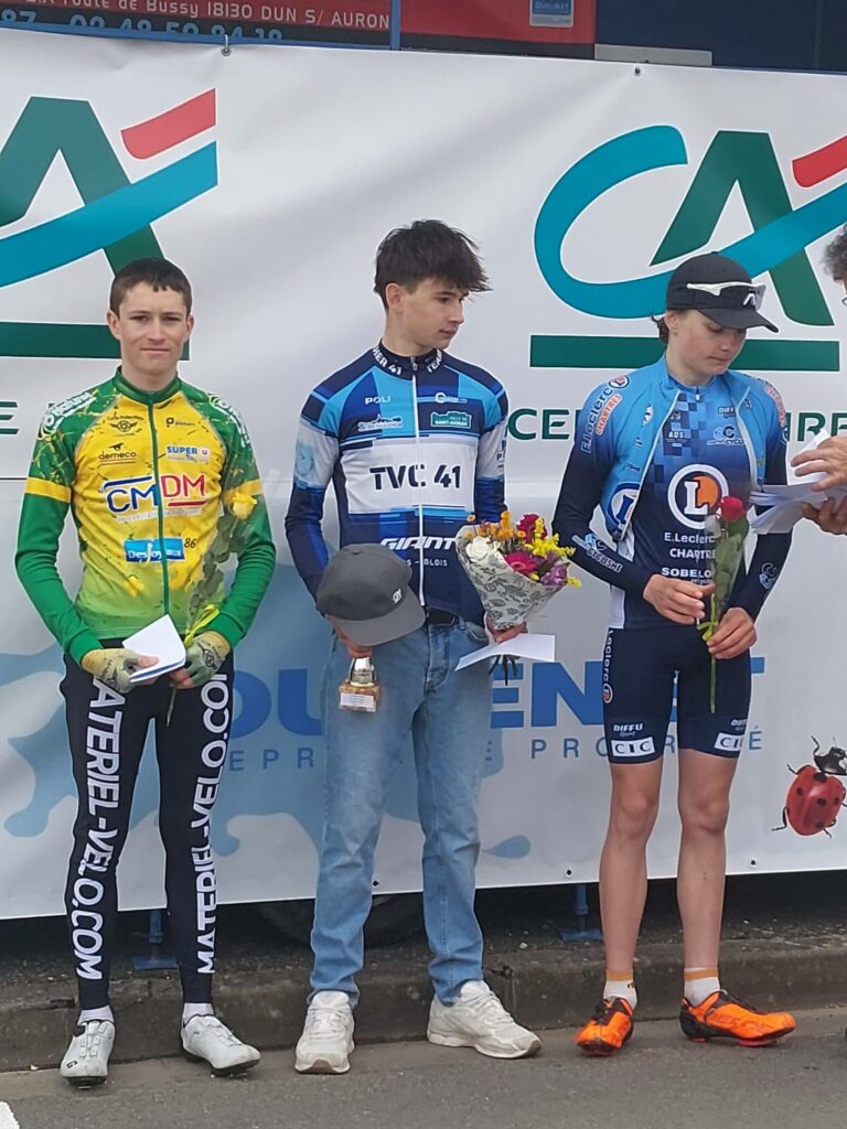 de ce sprint et échouera à la roue arrière du vainqueur Amaury Plancoulaine (team Vallée du Cher) et devant un coureur de Chartres 3ème.